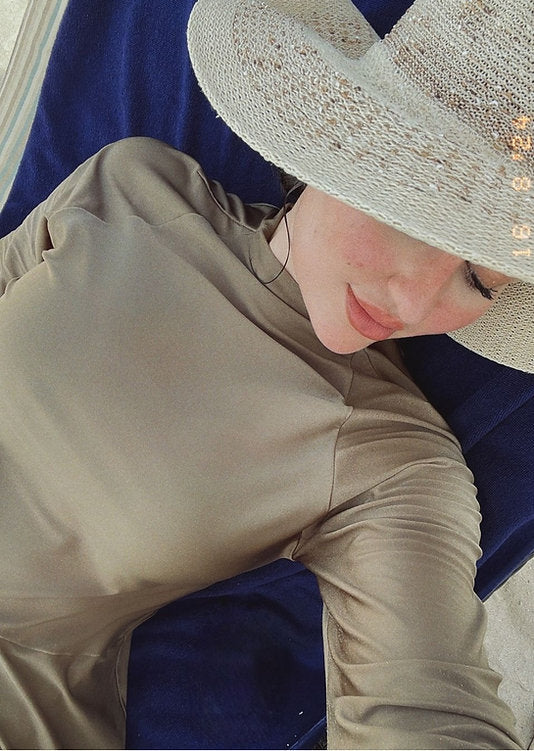 This figure flattering 3 piece is nothing short of perfection. We love this piece under the sun! The Bali Or turban is the perfect versatile option if you wish to have extra coverage around your neck!