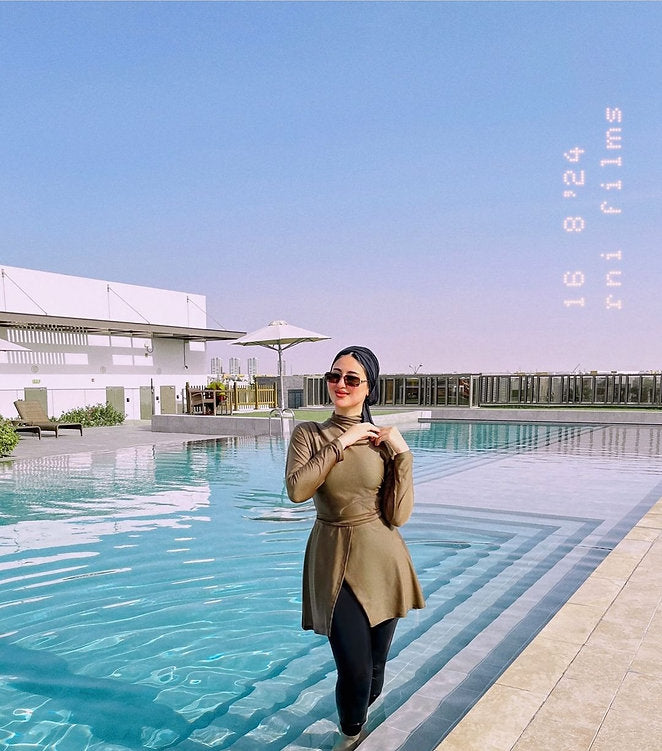 A timeless and sophisticated modest swimwear, a must-have for your holiday wardrobe.