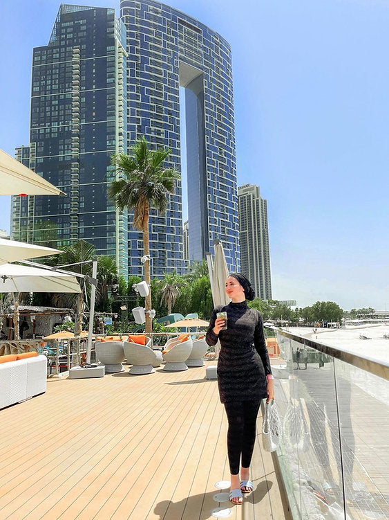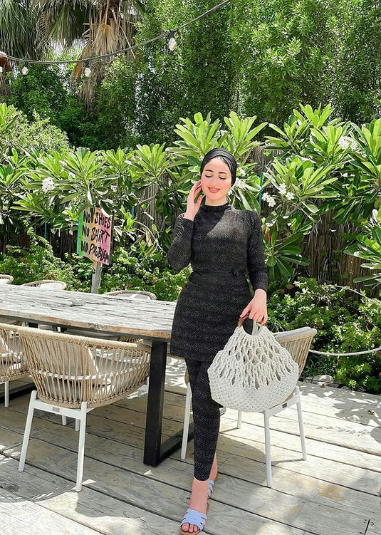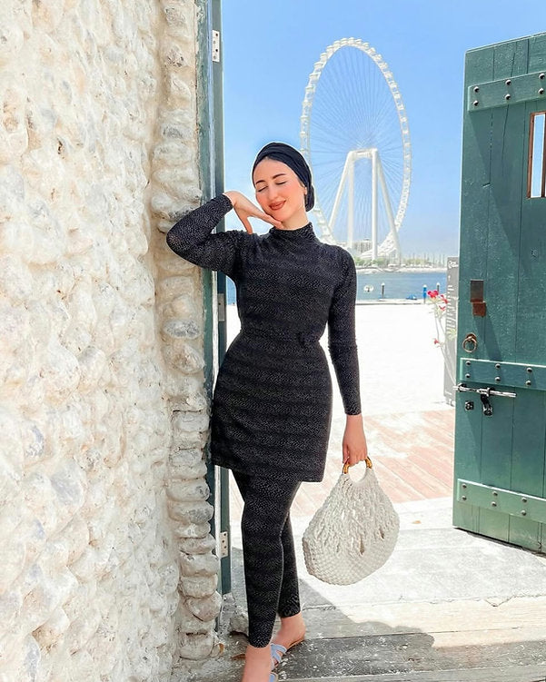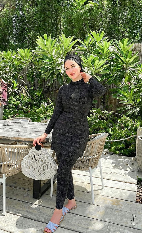 For sunning, lounging and dining, the Bondi Polka modest swimwear effortlessly transitions you through your itinerary. Designed in a buttery soft fabric for full coverage in mind with adjustable drawstring-waist, this burkini will have you looking & feeling your best.