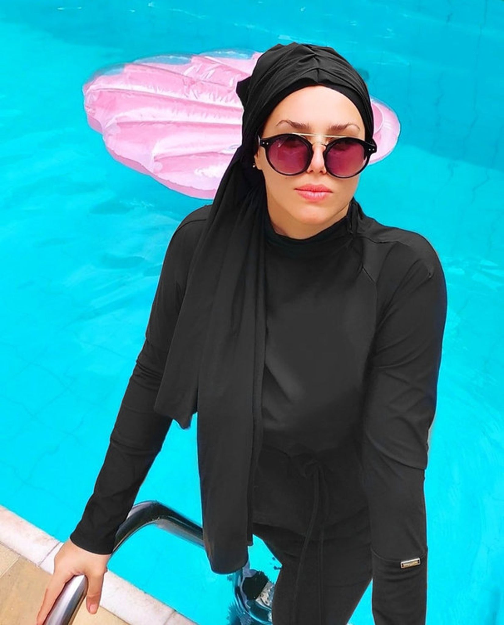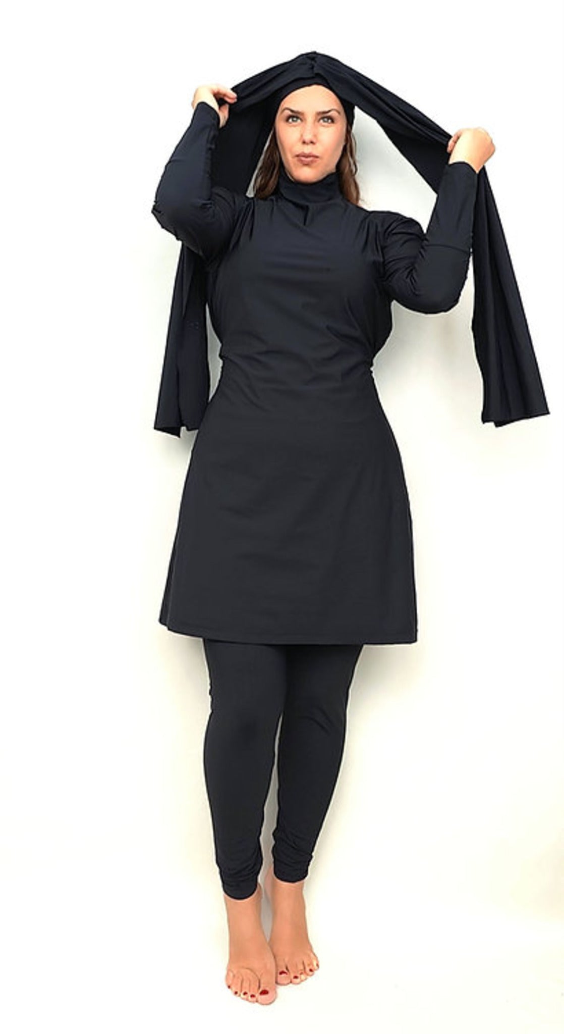 The RIYAD modest swimsuit expresses the harmony between minimalist cut and modern look made with playful drawstring-waist allowing to wear the dress as you wish. Tight fit or loose fit.