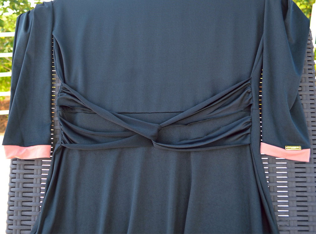 - Dress with the front belt twist detail and long sleeve in black color. You can choose to wear the twisted belt in the front or in the back of your dress! Wrist details in blush color.